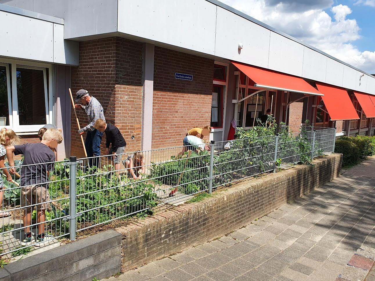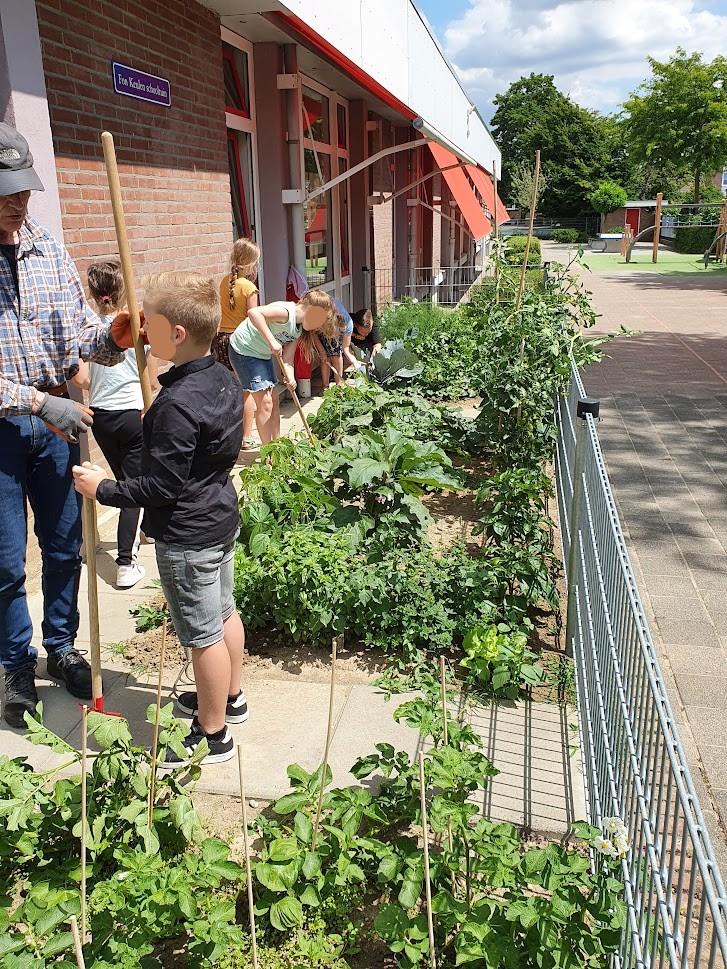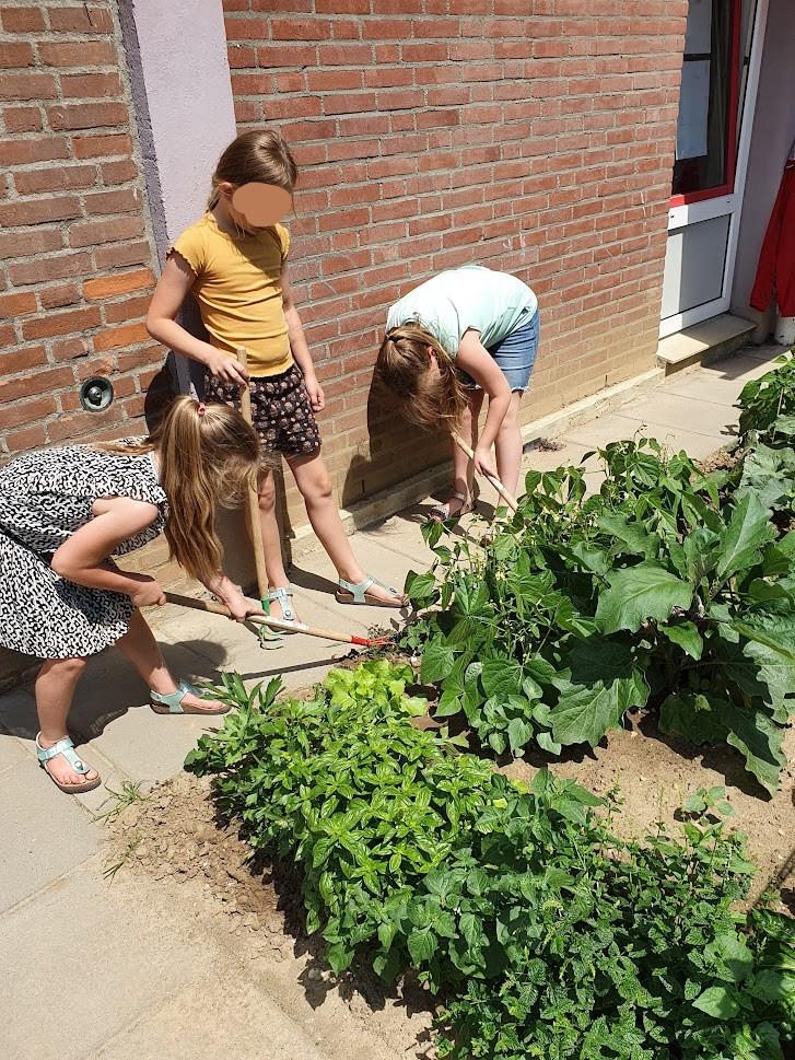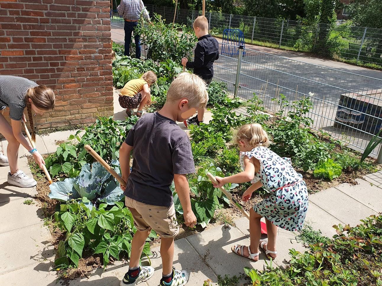 Schooltuin onderhoud met kinderen d.d. 05-07-2022.