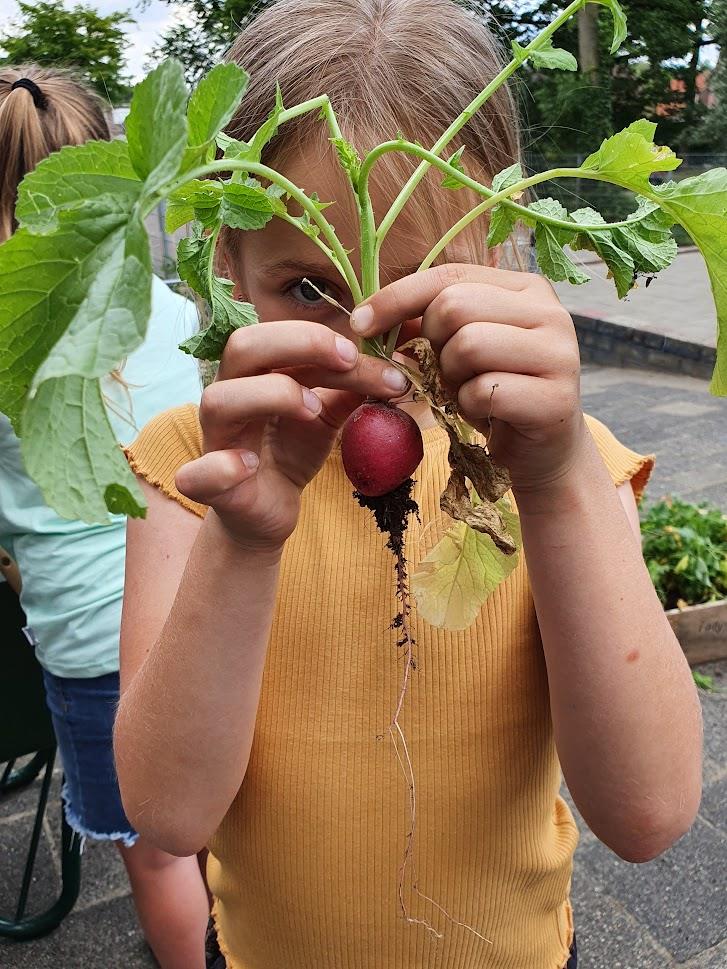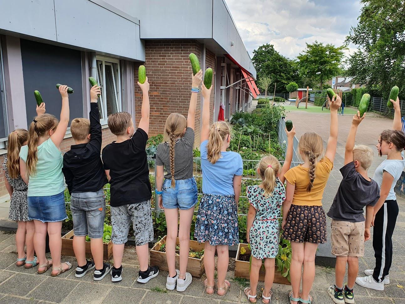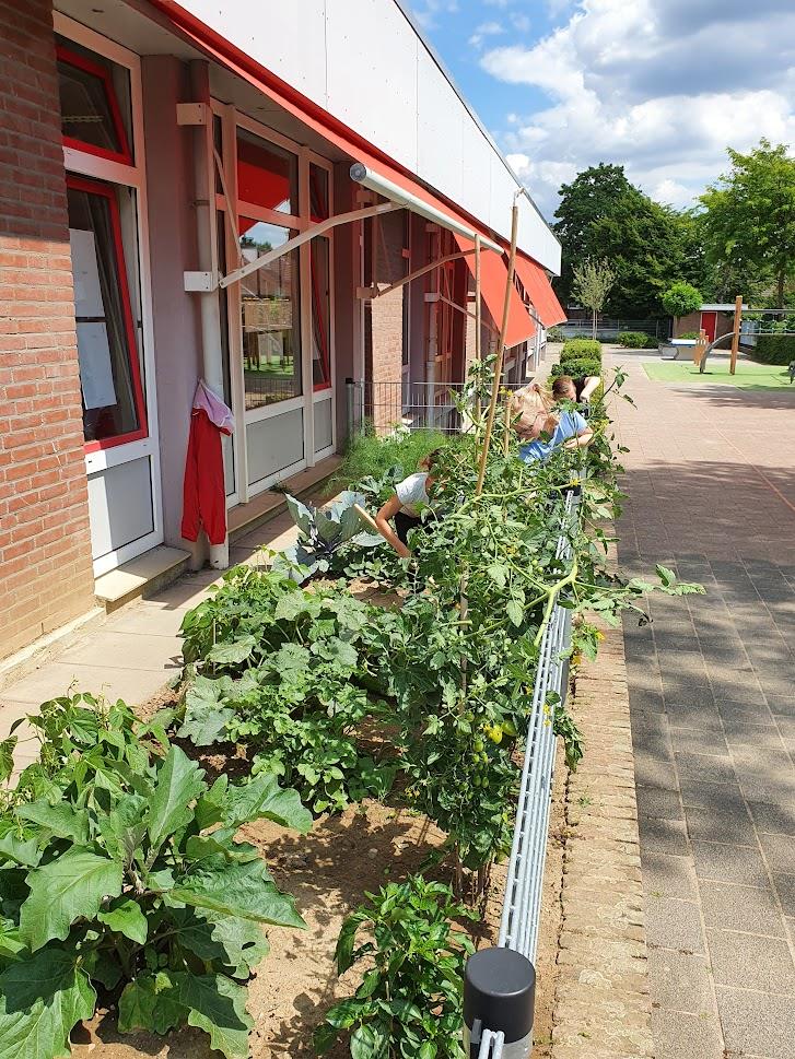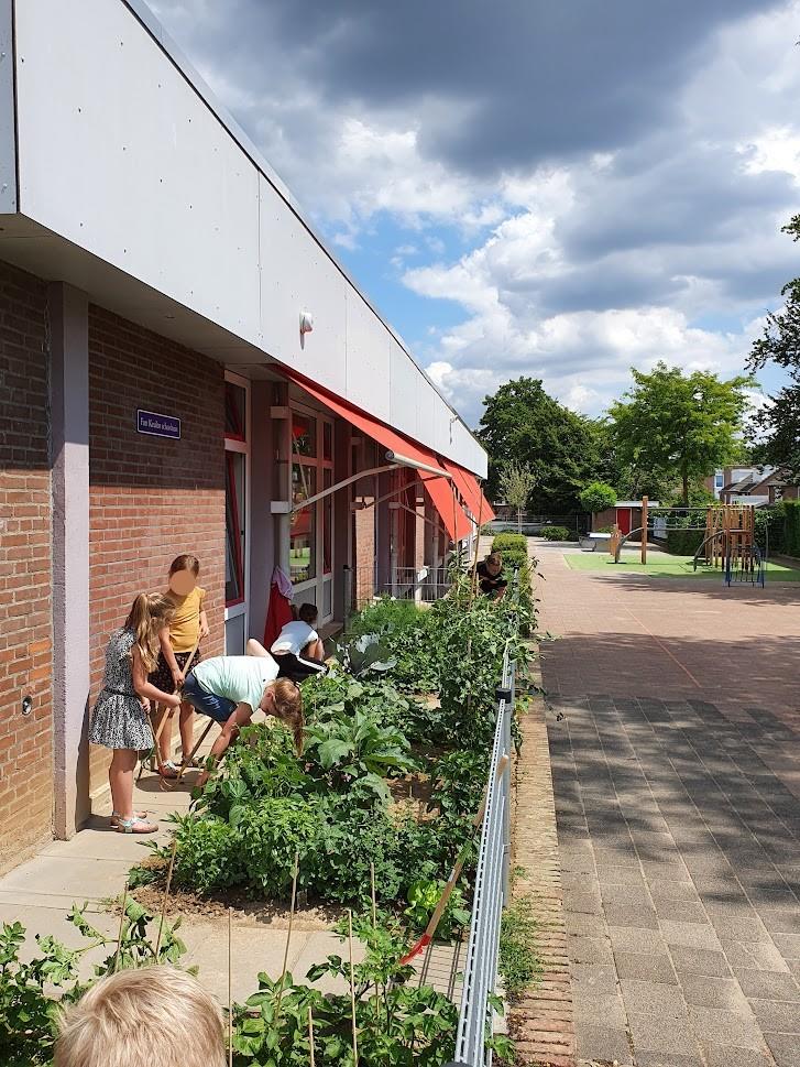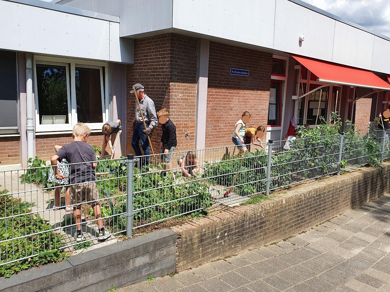 Schooltuin onderhoud met kinderen d.d. 05-07-2022.