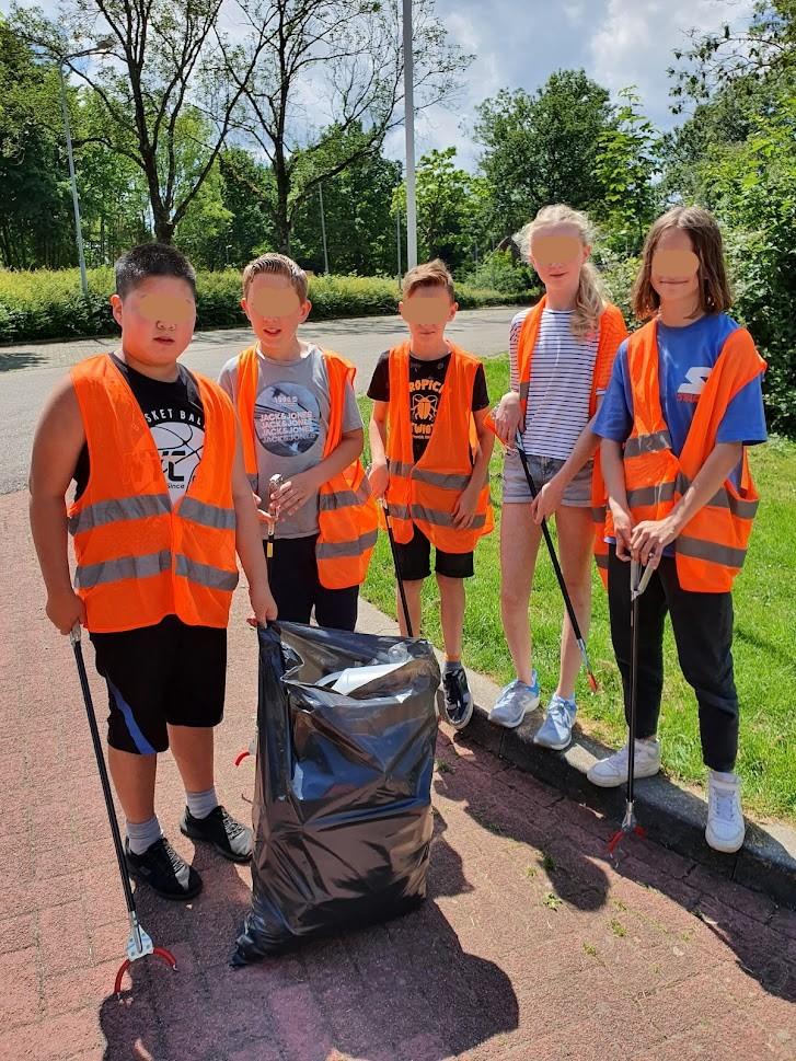 Zwerfafval opruimen met groep 7-8B d.d. 13-06-2022.